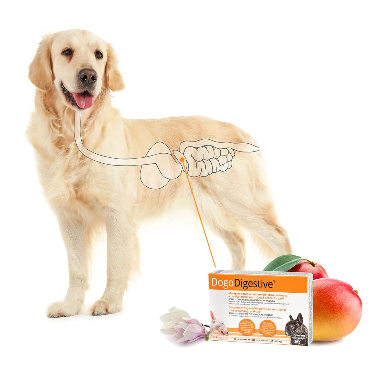 DogoDigestive® is an extremely innovative complementary feed, containing a series of active ingredients such as Mango, Magnolia, Anise, Gentian and Angelica which support and favor all stages of the delicate digestive process.